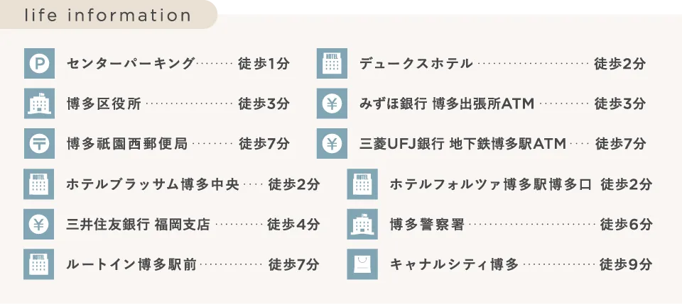 | 交通 | JR九州線・福岡市地下鉄「博多」駅徒歩3分 |