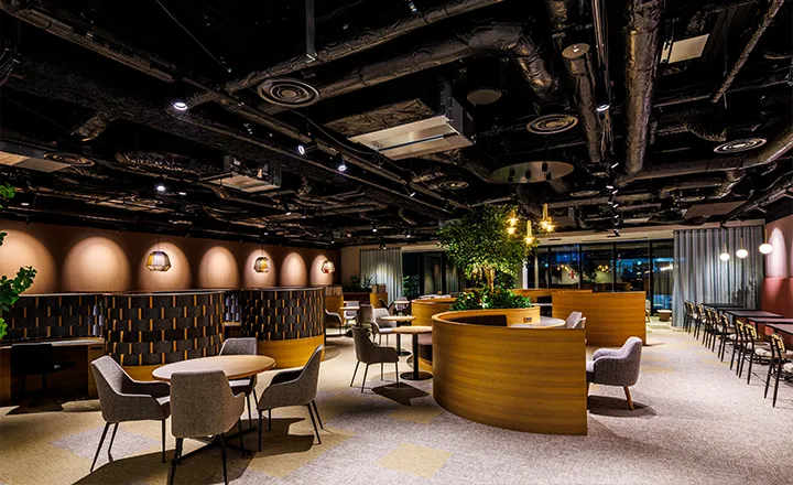 1階~3階のH¹Oテナント専用ラウンジ、5階Salon等、用途や気分に合わせて働き方を選べる共用部が充実。