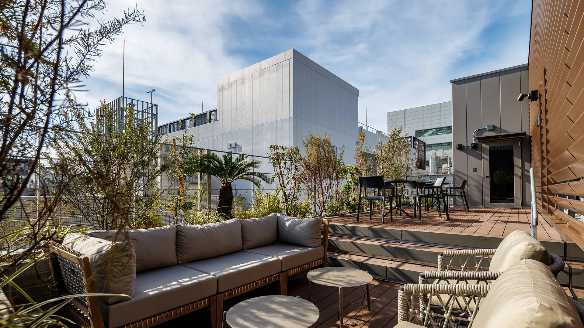 屋上テラスもあり、気分やタスクに合わせて自由にワークスペースを選択可能。